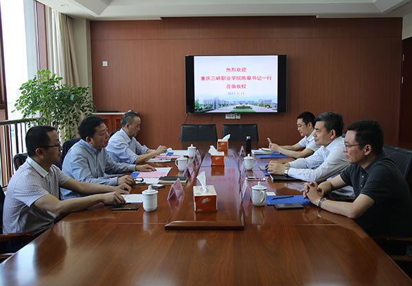5月11日,重庆三峡职业学院党委书记陈章、副院长张智率领相关部门负责同志来我校进行考察交流。我校党委书记朱爱胜、校长龚方红及教务处等相关部门负责同志接待了来访客人。