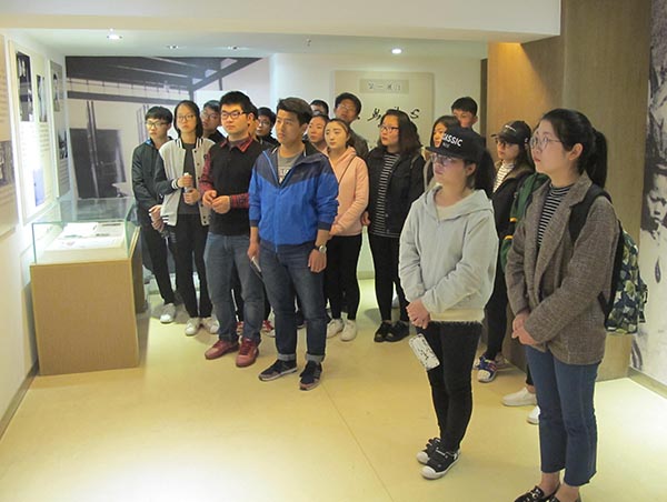 同学们参观相关资料和实物