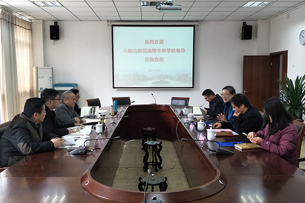 3月24日上午,马鞍山师范高等专科学校张勇军副校长一行6人来我校考察,我校副校长顾京及教务处、质控部、信息化中心等相关部门负责人在国际交流中心203会议室接待了来访客人。