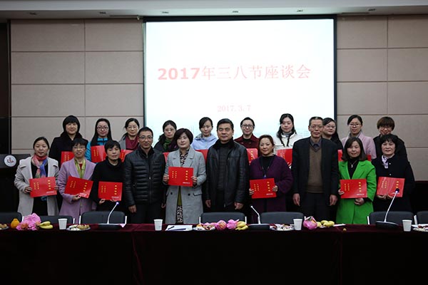 3月7日下午,学校在国际交流中心二楼报告厅召开庆祝“三八国际劳动妇女节”座谈会,校领导朱爱胜、龚方红、谈向群及校工会负责人、各分工会主席、女工委员、2016年度市(校)级优秀女工等参加座谈。