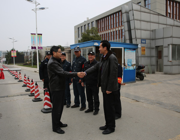 冯渊副校长走访了太湖校区保卫值班室、学生宿舍楼和中桥校区等处,向春节期间舍弃了与家人的团聚时光,为学校安全工作保驾护航、为留校学生做好服务保障工作的教职员工表达了浓浓的新春问候。