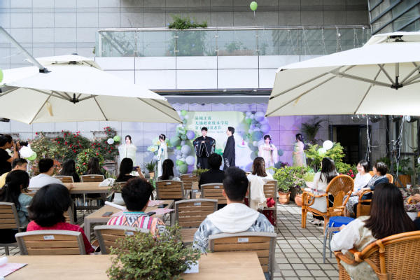 随着时代的日益发展,世界文化得到了更好的融合,语言不再是界限,外旅学院留学生小鱼和率英明为我们带来了朗诵与吉他弹唱《水调歌头·明月几时有》;随着夜色渐浓,惜花园在灯光的照射下更加静谧和迷人,张啸老师为大家带来的萨克斯独奏《征服》,轻柔的吹奏传递着情感的涌动瞬间征服了全场观众,将晚会带入了高潮;王颖同学和大家分享了书籍《月亮与六便士》,告诉大家追逐梦想与选择财富的关系;民乐社带来的乐曲《姑苏行》带领全场走进如诗如画的江南水乡,那里烟雨蒙蒙,杨柳依依;王浩同学和大家分享了书籍《心智突围》与读书感悟:个人成长从不需要外部工具的加持;薛尚和尹艺同学带来的朗诵《雨》,传达出了大自然最纯净的音符和诗人、音乐家们无尽的灵感之源;朱金银同学带来的歌曲《小情歌》以灵动的声音将晚会推向又一个小高潮。