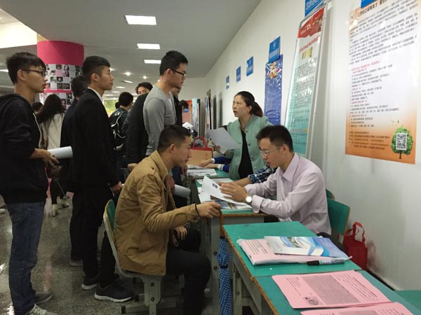 当天一早,2016届毕业生们就来到会场查看参会企业信息,主动向用人单位毛遂自荐,部分热门企业、岗位面前甚至排起了长队。不少学生当场与用人单位达成了签约实习意向,还有部分学生准备参加用人单位后续组织的笔试、面试。来校招聘的企业有往年的招聘大户,如菲尼萨光电通讯科技(无锡)有限公司、威孚高科技集团股份有限公司、中企动力科技股份有限公司、健鼎电子有限公司等,也有今年首次来我校挑选人才的大企业,如奇瑞捷豹路虎汽车有限公司、中电熊猫液晶有限公司、欧司朗半导体有限公司。他们对我校毕业生表现出的综合素质给予了高度评价,也对招聘会的组织水平给予了充分肯定。
