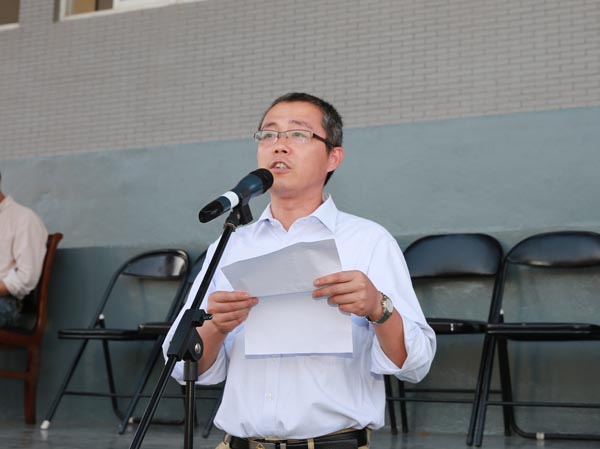 强伟纲处长宣布广播操前六名和体育道德风尚奖