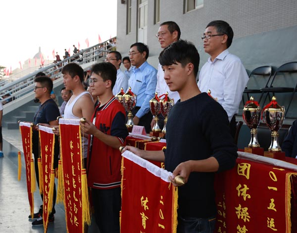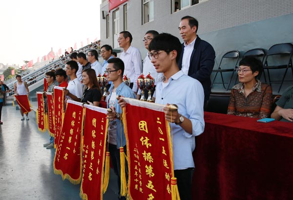 闭幕式由工会主席、体育部直属党支部书记常华主持。学生处强伟纲处长宣布了体育道德风尚奖和广播操比赛名次;总裁判长华宝元宣布了男、女团体总分前六名,与会领导向获奖集体和个人颁发了锦旗和证书。在这次历时两天的运动会上,全校共有1400多名学生运动员参加了34个田径项目的激烈角逐,500余名教职工运动员参加了7个项目的紧张比赛。其中有208人次获得各个田径赛项的前8名,72个团队获得各项接力赛的前8名,物联网技术学院、汽车与交通学院、机械技术学院一队、控制技术学院一队、管理学院和艺术与设计学院获得广播操比赛前6名;有2名运动员打破了校运会纪录,其中中桥校区一队的朱玉杰同学以11.25米的成绩打破男子铅球校运会纪录,中桥校区一队方灿同学以25.58米的成绩打破女子铁饼项目的校运会纪录。汽车与交通学院、机械技术学院二队、外语与旅游学院、财经学院获得了体育道德风尚奖。