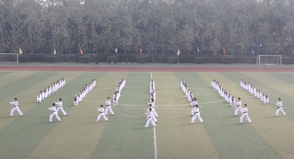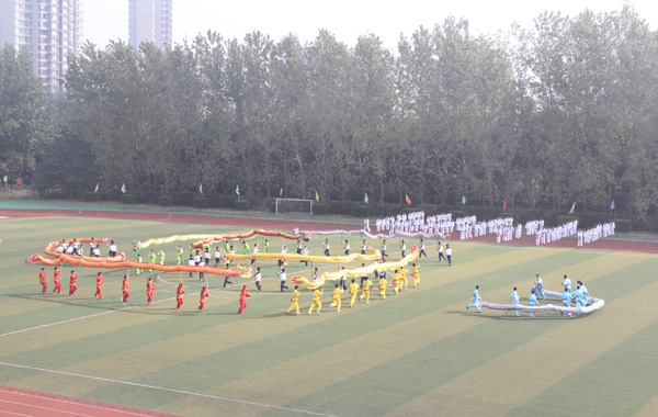 裁判员代表李铎和运动员代表葛强先后宣誓,校党委书记朱爱胜宣布2015年运动会开幕。随后进行了广播操比赛、舞龙表演和跆拳道表演。