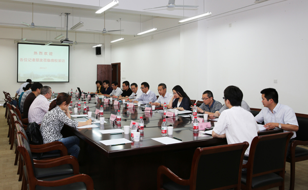 65上午,《人民日报》、新华社、《光明日报》、《经济日报》等十多家媒体来校开展集中采访活动,校领导龚方红、谈向群及党委组织部、党委宣传部、教务处等职能部门和学院负责人在国际交流中心接待了记者一行。