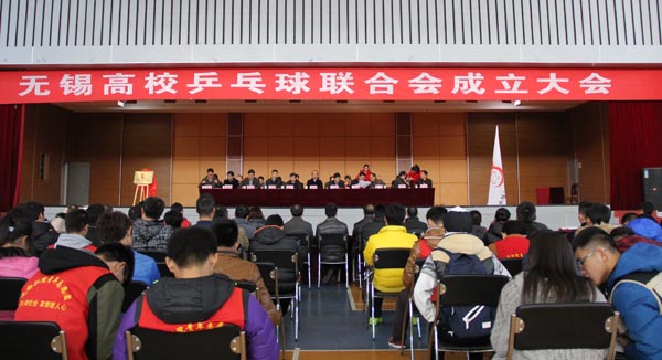 成立大会由无锡市广播电视大学党委副书记王仁刚主持,会议审议并通过了《无锡高校乒乓球联合会章程》和首届领导机构组成人员名单。无锡市教育局副局长符菊成、体育局副局长汪克强为市高乒联揭牌,并向名誉会长、名誉副会长颁发聘书。我校当选联合会会长单位,朱爱胜书记当选为高乒联会长,副书记谈向群、党院办主任罗嘉军、体育部副主任华宝元分别当选副会长、秘书长和常务秘书长。