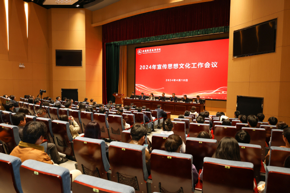 4月10日下午,学校在厚德楼一楼报告厅召开2024年宣传思想文化工作会议,全体在锡校领导、各二级党组织书记、副书记、宣传委员,教工通讯员,受表彰人员等120余人参加会议,会议由校长周桂瑾主持。