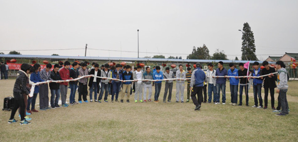 为期一天的素质拓展训练,由破冰活动、齐心协力、急速60秒、挑战150(动感颠球、不倒森林、南水北调、团队击掌)等项目组成。破冰热身中,各队队员在教练的指导下,起队名、画队标、创队训、唱队歌,场面热闹非凡。在接下来的比赛项目中,同学们参与热情高涨,士气高昂,较好完成了各项比赛。其中,“德玛西亚”队(机械电子11441班)获得总冠军。