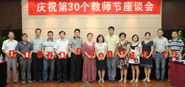 在第30个教师节来临之际,我校于9月9日下午在国际交流中心二楼报告厅召开座谈会,校领导朱爱胜、谈向群、华坚、顾京,工会、人事处、组织部等相关部门和院系负责人,教授博士代表、获表彰的优秀教师及优秀教育工作者、学生代表60余人参加了座谈。