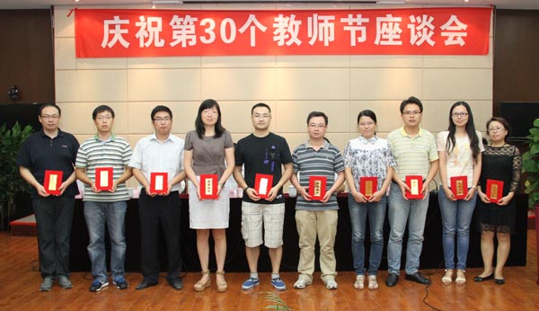 副校长顾京主持座谈会。党委副书记谈向群通报了2013-2014学年度学校教师获市级以上表彰项目情况,过去的一年中,在广大师生的共同努力下,学校获得市级以上表彰10余项,其中国家教学成果一、二等奖各一项,省级教育教学成果特等奖、一等奖各一项;教务处被评为全国教育系统先进集体,控制技术学院被评为全国职业教育先进单位;获得全国职业院校技能大赛一等奖三项、三等奖两项。华坚副校长宣布了2013-2014学年度校优秀教师、优秀教育工作者表彰决定,34名同志因在教学一线、管理服务等方面成绩突出获表彰。随后,校领导为获表彰和从教30年的教师颁发了荣誉证书,王建荣、赵后起、肖颖、陈伟、王爽围绕学校发展、从教心得、师生相处、管理服务等方面畅谈心声,并提出了中肯的建议,学生代表也向全校教师表达了节日的祝福。