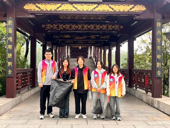 活动中,同学们身着统一的志愿者服装,手持黑色垃圾袋,积极行动,穿梭于公园的每一个角落。他们细致入微,无论是草丛中的隐蔽垃圾,还是跟土地融合的垃圾,都逃不过他们的“火眼金睛”。在秋日徐徐清风下,同学们的身影成为了长广溪畔一道亮丽的风景线。