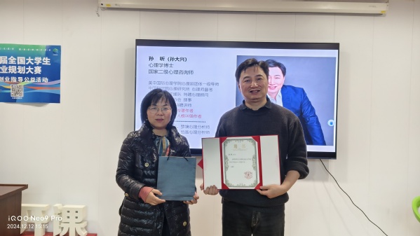 会后,财经学院党总支书记徐瑾为孙昕博士颁发了“财经学院校外心理辅导员”聘书。孙昕也在活动现场为同学们签名赠书。