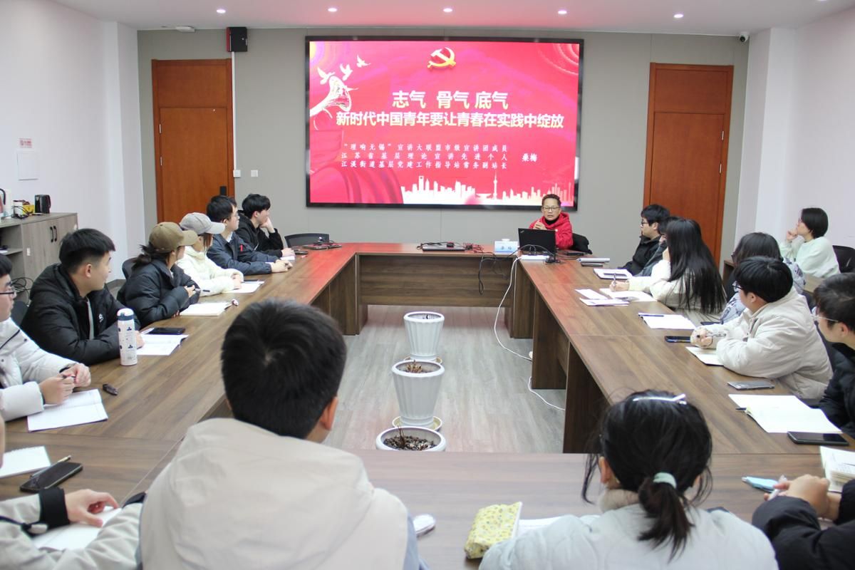 为深入学习贯彻党的二十届三中全会和习近平新时代中国特色社会主义思想,进一步丰富分党校的形式和内容,切实提高入党积极分子的思想理论水平,12月17日,机械工程学院邀请无锡市“理响无锡”市级宣讲团成员、新吴区江溪街道党建工作指导站常务副站长、全省理论宣讲先进个人桑梅授课。机械学院党总支书记王振华、副书记王丽梅和学生党员及入党积极分子40余人参加。活动中,桑梅以“志气、骨气、底气——新时代中国青年要让青春在实践中绽放”为主题,给青年学生上了生动一课。