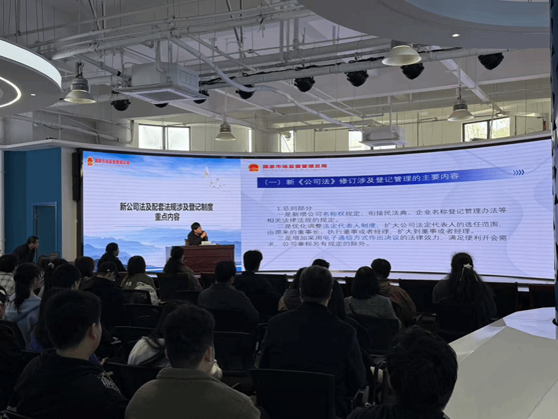 袁敏锋重点解读了新《公司法》下,公司的登记管理制度、设立退出制度、多宝官方网站设置、注册资本的限期认缴制度等,他凭借丰富的实践经验和扎实的专业知识,使在场师生对新政策下公司治理结构以及相关法律责任等方面有了更清晰的认知。