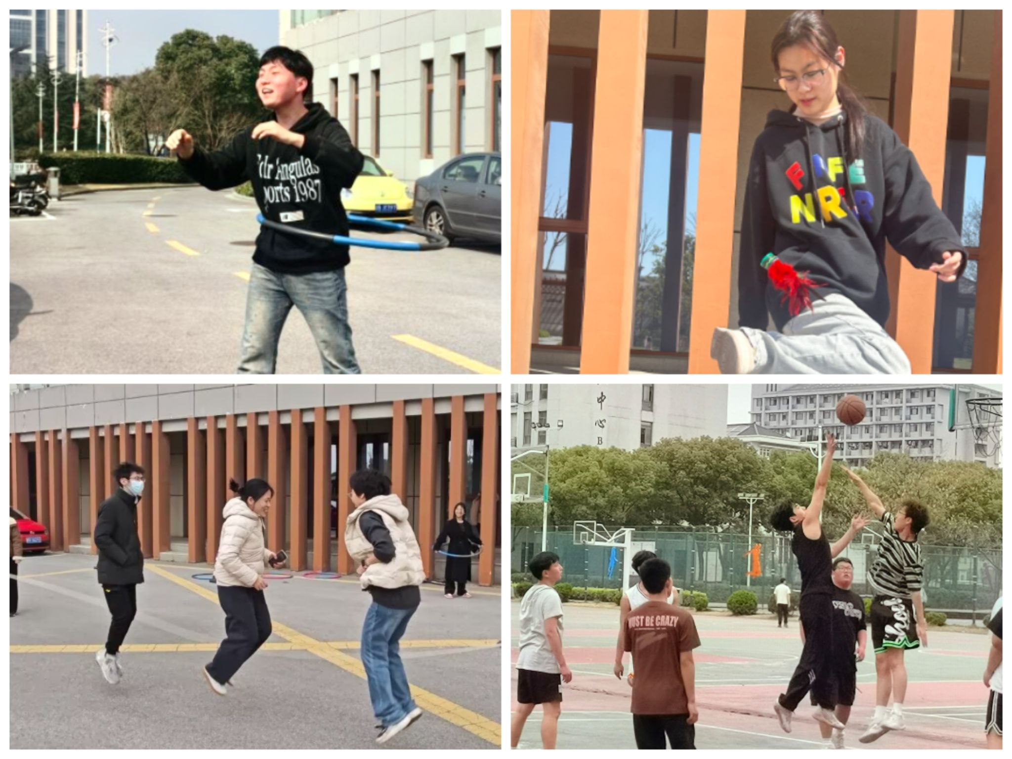 活动刚开始的几天,运动场上还只是零零散散的几个同学,随着活动的深入开展,越来越多的同学受到感染,纷纷自发组队下楼参与运动。每天9点50分,设计艺术学院的师生们准时相约吴文化苑,一场充满活力与趣味的课间运动盛宴就此拉开帷幕。