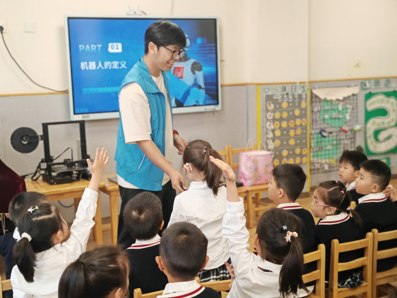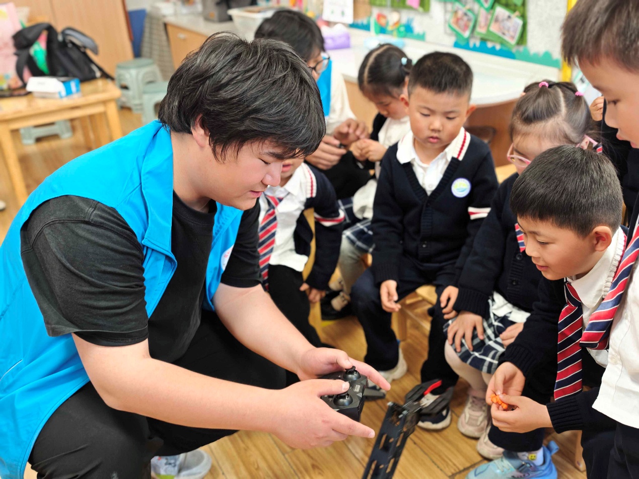为激发幼儿对科技创新的兴趣,播撒人工智能时代的启蒙种子,4月15日下午,控制工程学院组织学生走进观山实验幼儿园,为小朋友们带来了一场别开生面的“机器人探秘之旅”。通过生动讲解、互动体验与创意实践,让孩子们在玩中学、学中悟,感受科技的无穷魅力。