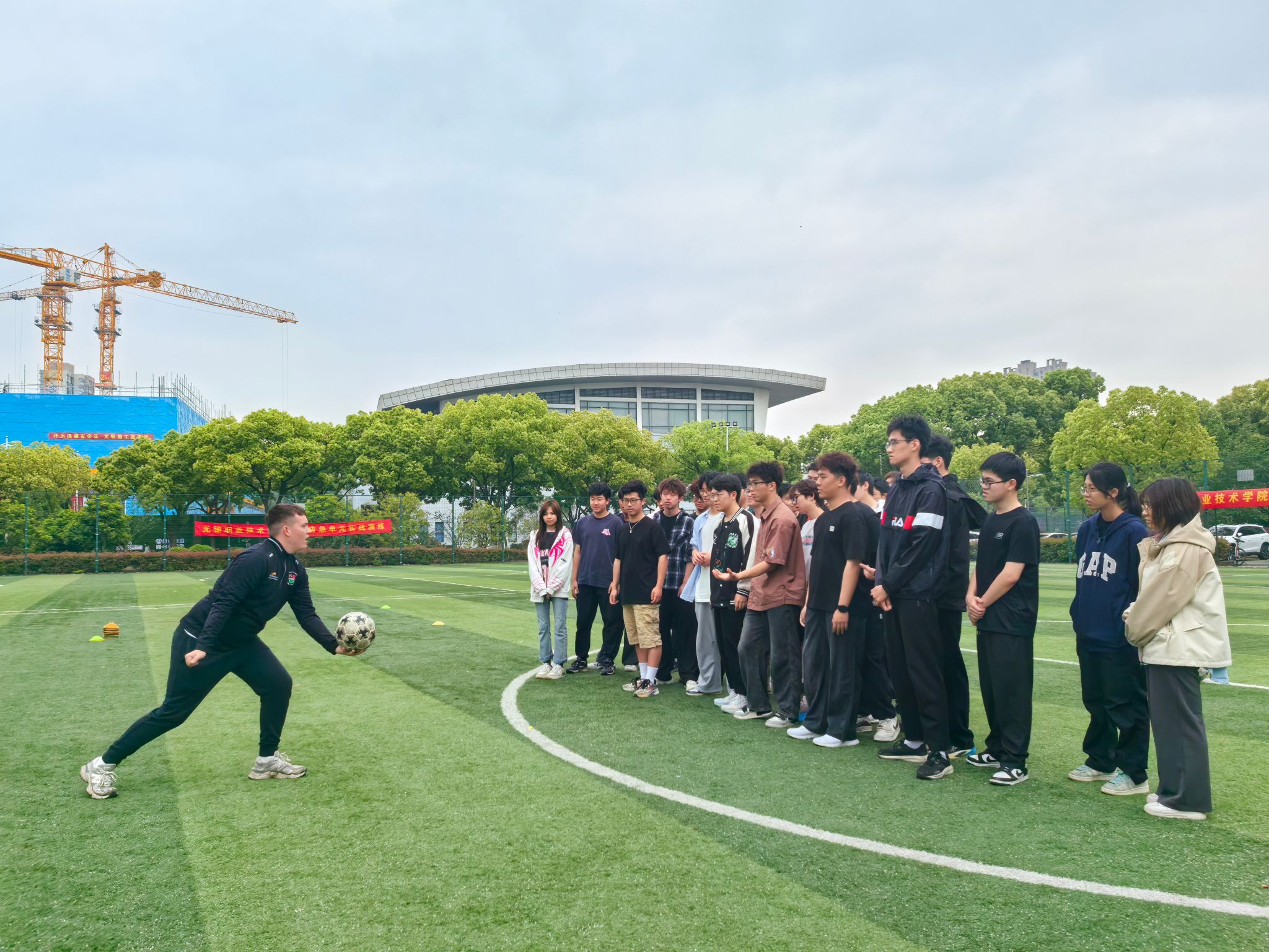 阳光下,汗水与笑声交织,精准的长传、默契的跑位、及时的补防,让这群年轻人真正领略到足球运动中"独木难支,众擎易举"的深刻哲理。球场上,学生娴熟的球技和默契的配合、扎实的足球基本功和良好的身体柔韧性也给Tristen教练留下了深刻印象。