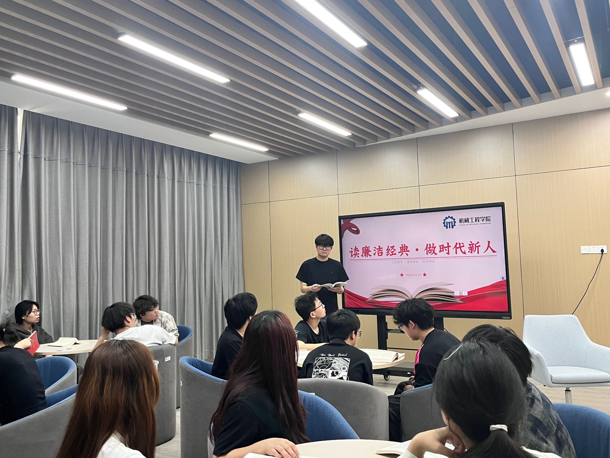 为进一步厚植廉洁文化根基,引导青年学生树立崇廉尚洁的价值观念,营造崇廉尚洁的校园氛围,4月23日世界读书日当天,机械工程学院组织入党积极分子、团员青年开展了“读廉洁经典,做时代新人”主题读书活动,旨在通过阅读经典、心得分享、互动交流等形式,汲取廉洁力量,筑牢拒腐防变思想防线。