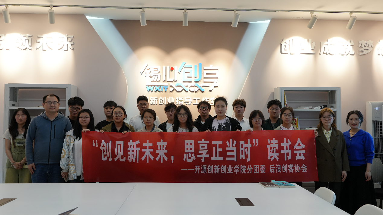 书籍是指引我们前行的灯塔,为激发同学们的阅读兴趣,营造良好的读书氛围,由双创学院主办,后浪创客协会承办的“创见新未来,思享正当时”读书会活动于 4 月 22 日在“锡心创享”工作室开展。