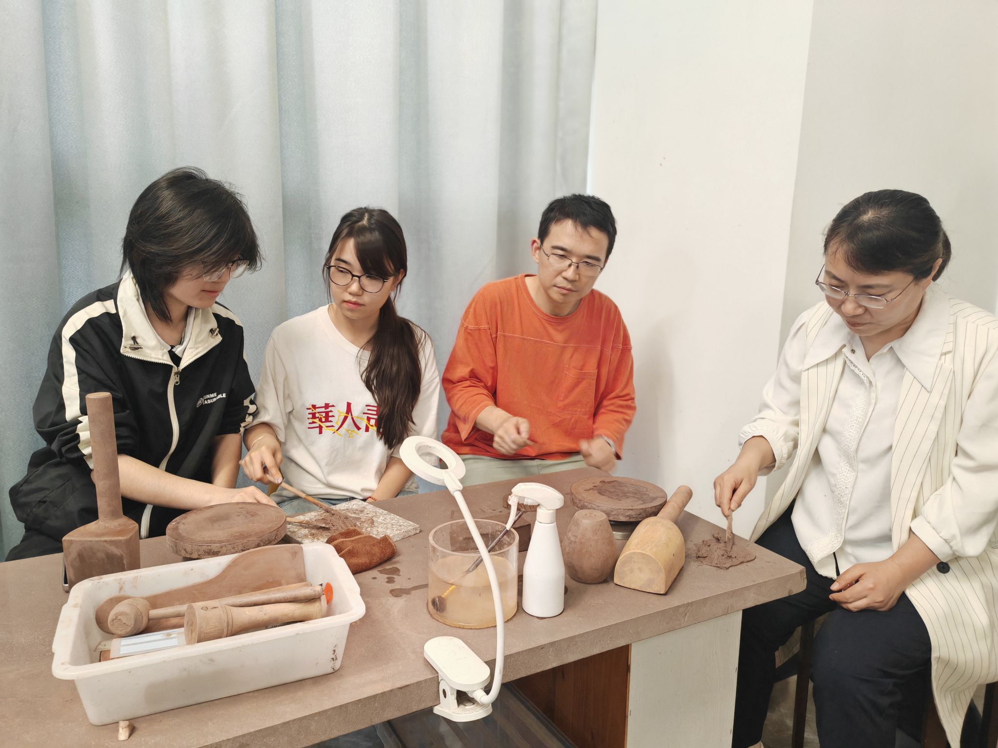 龚方红与学生体验紫砂技艺