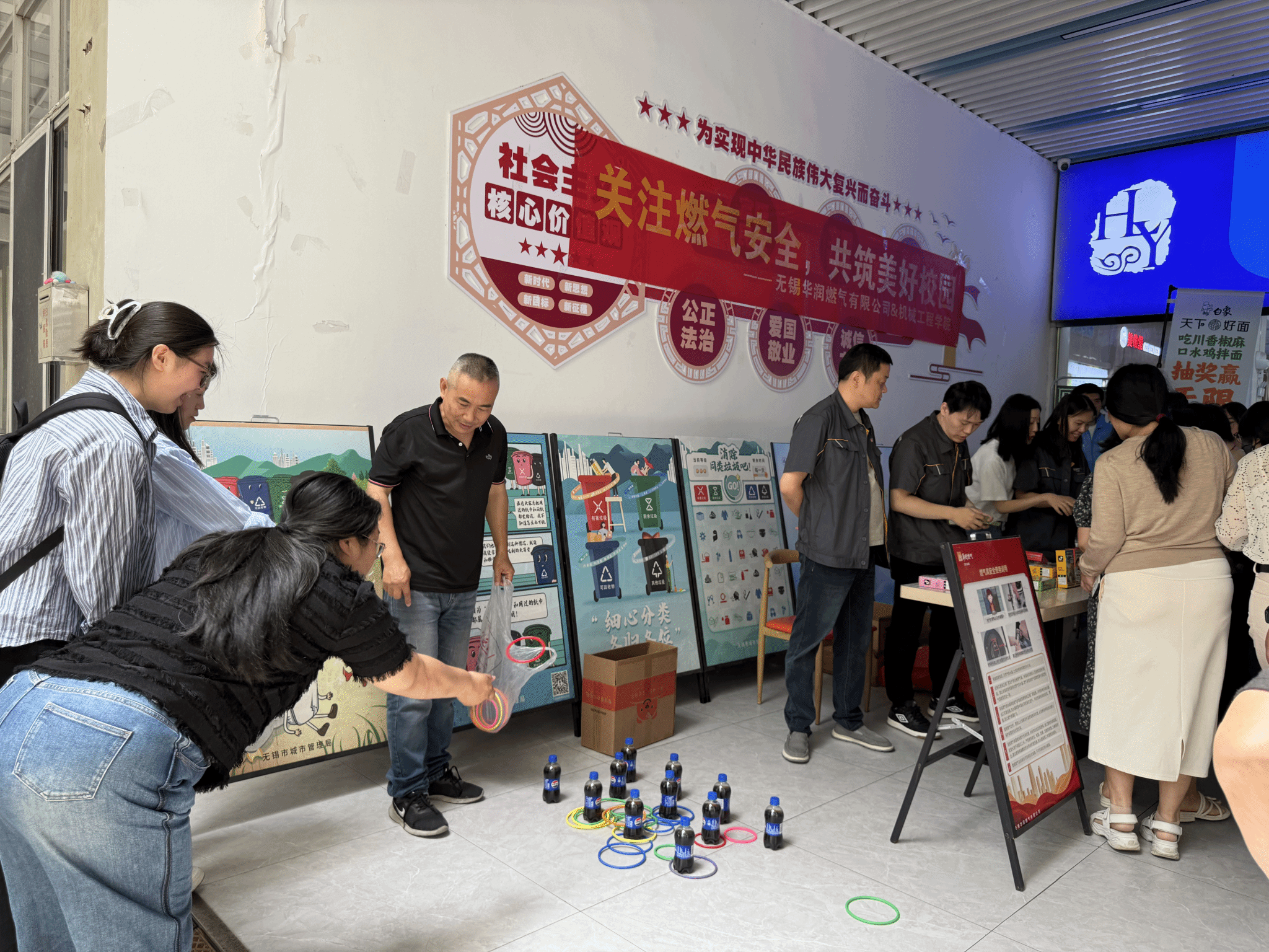 中午,一食堂门口开展了“安全知识趣味挑战”活动,面向教师群体进行定向宣传。工作人员通过发放燃气安全手册、设置咨询台等方式,向过往教师普及家庭燃气安全常识。为增强互动性,现场特别设置了“安全知识套圈赢盲盒”游戏:参与者需正确回答燃气安全问题方可获得套圈机会,套中目标即可抽取精美盲盒奖品。活动吸引了大量教职工驻足参与,既有年轻教师挑战答题,也有老教授分享经验,欢声笑语中安全知识深入人心。“这种形式既轻松又能学到实用知识,我答对了3道题,赢了小礼品!”袁老师举着奖品笑着说道。