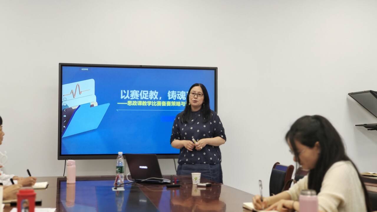 为进一步提升思政课教师教学水平和竞赛成绩,5月29日下午,马克思主义学院举行了“正思讲坛”系列之《以赛促教,铸魂育人——思政课教学比赛备赛策略与课堂创新》主题讲座。中国企业管理无锡培训中心主任、党委书记梅亚萍担任本次主讲嘉宾。马克思主义学院院长宋瑞超主持讲座。