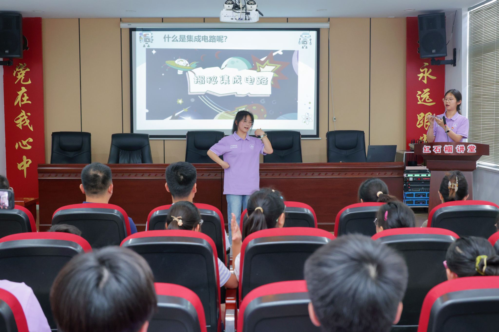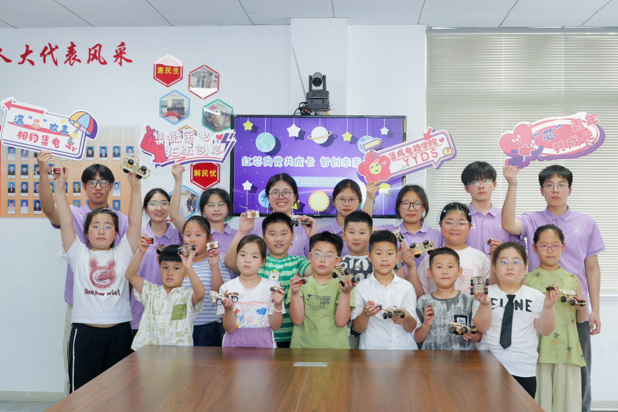 活动中,实践团成员和孩子们参观了黄桥新四军战役纪念馆,革命精神在幼小心灵生根发芽。在科技科普环节,集成电路学院的“芯青年”们大显身手。为孩子们揭开了“芯片与集成电路”的神秘面纱,孩子们化身“小小工程师”,一辆辆亲手组装、调试成功的遥控赛车在临时搭建的“赛道”上疾驰,科技的种子在欢声笑语中破土发芽。正值暑期,实践团为孩子们量身定制了“安全铠甲”,聚焦防溺水、防烫伤等暑期高发风险,深入浅出地剖析危险成因,传授实用的风险规避技巧和应急处理方法。孩子们热情参与,积极发言,为快乐暑期筑起了一道坚实的防护墙。