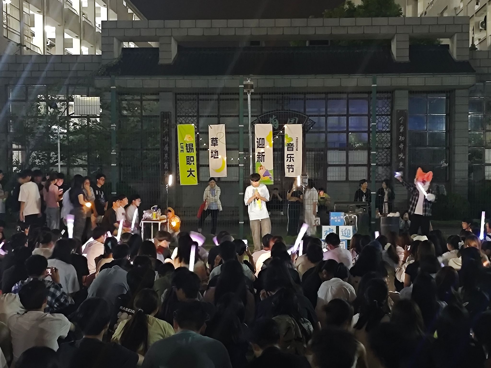 随着夜色降临,现场新生手持的荧光棒陆续点亮,沿人群流动方向形成“星河”状视觉效果。音乐响起后,新生们纷纷举起手臂跟随节奏挥舞,并共同合唱经典曲目,现场歌声持续回荡。新生们在《光辉岁月》《我的未来式》《星辰大海》等青春曲目的共鸣中,开启了对大学生活的美好憧憬,此次音乐节既有新生歌手带来的流行金曲,用清澈嗓音传递青春心事;也有乐器爱好者现场演奏的摇滚曲目,强劲节奏点燃全场热情,更有学校舞蹈社团的伴舞表演,动感舞姿为音乐增添别样活力。