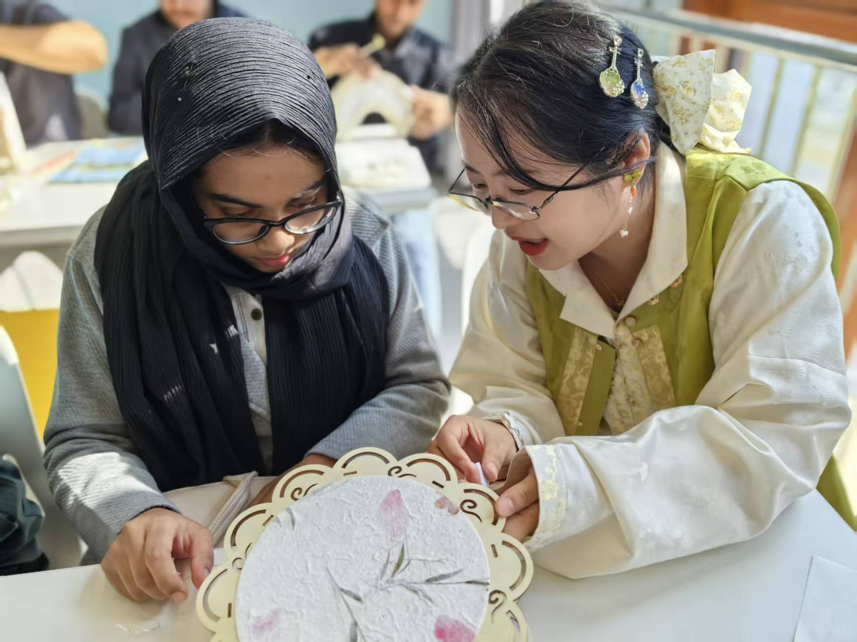 此次心理团辅的深层意义远超传统手工体验。罗珊珊表示“灯笼作为‘光’的载体,在心理层面象征着希望与指引。留学生在适应新环境时,常会经历‘文化黑暗期’,亲手创造光明的过程,正是对其内在力量的唤醒。”活动通过非言语的艺术表达,为参与者构建了安全的情感宣泄渠道,而文化元素的融入则架起了跨文化理解的桥梁。这种“以文化为载体,以心理成长为内核”的创新模式,不仅有效缓解了学生的跨文化适应压力,更在共建共享的过程中深化了中外学子的友谊,实现了文化传承与心理育人的双赢,为推进国际化校园的心理健康服务工作提供了创新范式。