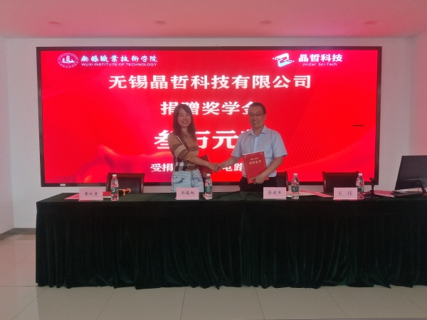 蔡建军首先感谢了无锡晶哲科技有限公司设立3万元企业奖学金,介绍了学院的近中期发展目标,并与企业签订了产学研合作协议。黄从贵宣读首届“晶哲杯”大学生电子设计竞赛校赛获奖名单,勉励大家再接再厉、勇攀高峰,再创佳绩,回报社会。