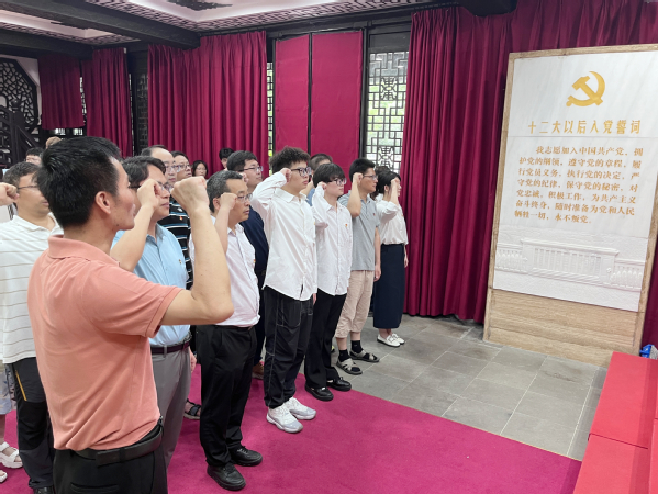 为庆祝中国共产党成立103周年,集成电路学院党总支以传承红色文化、赓续红色血脉为导向,7月1日上午沿着革命历史的足迹来到位于无锡市中心的城中公园,寻访无锡第一个党支部诞生地,开展迎庆“七一”师生主题党日活动暨新发展党员入党宣誓仪式。