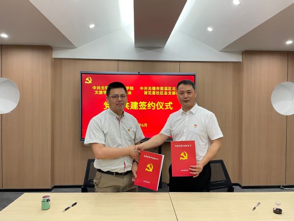为深入学习党的二十大精神与习近平新时代中国特色社会主义思想,创新基层党建工作思路,提高基层党建工作水平,6月5日,文旅学院党总支与梁溪区北大街街道荷花里社区党总支在荷花里社区举行党建共建签约仪式,文旅学院党总支书记吴乃鑫、副书记丁远,荷花里社区党总支书记施焕焕、副书记许莎等出席仪式。