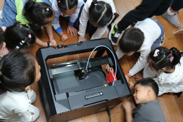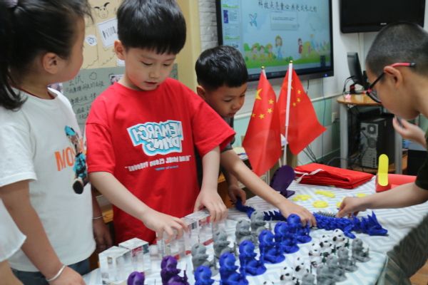 为了提升课堂吸引力,周丽老师通过视频动画的方式向小朋友们直观诠释了3D打印主要的成型方式,在演示讲解环节,周丽将它比喻为蚕吐丝,以便小朋友们更清晰地理解,并用电脑里的模型文件为基础,演示打印3D的立体图像,引得现场小朋友惊呼连连。通过现场打印模型,学生党员和小朋友们一起传阅了彩色国宝熊猫等3D作品,探索富有魅力的机械科技文化,培养小朋友们自主探究科技的兴趣和能力,使其不断汲取科学知识中滋养的科学精神。学生党员们还介绍了中国飞机自主创新的内容,结合科技小制作,理论运用于实践,用卡纸和矿泉水瓶完成了环保手工飞机。