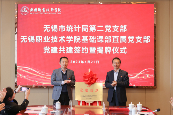4月25日上午,无锡市统计局第二党支部与我校基础课部直属党支部举行党建共建签约仪式。统计局副局长杨晋超、王骏,我校党委书记龚方红、纪委书记李衔、组织部副部长徐瑾以及双方党员代表共31人出席活动。活动由基础课部主任、支部委员王志萍主持。