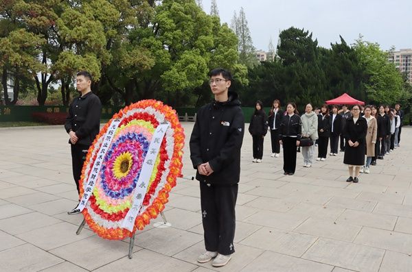 陵园内庄严而肃穆,在镌刻着“为国牺牲人民英雄纪念塔”前,学生代表向革命先烈敬献花篮,全体师生肃立默哀,以最崇高的敬意、最真挚的感情表达着对先烈的深切悼念之情。