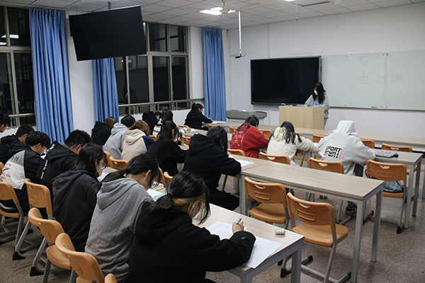 11月20日晚,擂台赛初赛闭卷笔试在教六、教七教室正式开始,考试记录保证考试的真实性、有效性。考场中,所有学生以饱满的激情投⼊考试⼤家都仔细答题,认真检查。考场秩序井然,考试效果整体良好,学院辅导员全程巡视考场,及时解决监考中存在的相关问题,有力保障了考试工作的顺利进行。最终,共选拔出8名成绩优异的学生进入决赛。