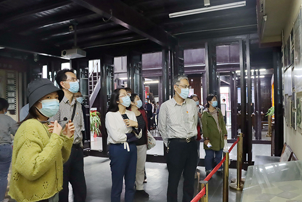 在党的二十大隆重召开之际,为深入学习贯彻党的二十大报告精神,增强全体党员的责任感和使命感,弘扬革命精神,10月21日下午,财经学院党总支与机关三支部、学校关工委一行30余人前往江阴长泾镇新四军六师师部旧址纪念馆、张大烈故居等地,开展“踏红色足迹,悟初心使命”主题党日活动。校长周桂瑾、党委副书记杨雪琴参加了本次活动。