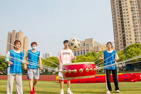 同学们分为红、橙、蓝、浅蓝四队,开展了“拔河”“龙舟赛跑”“击鼓颠球”“板鞋合力跑”等趣味丰富的益智活动,不仅考验了团队之间的协作配合能力,也拉近了同学们之间心的距离。操场上回响着阵阵“加油,不放弃!”的口号声,汗水陪伴着笑颜,成为了活动场上最灿烂的阳光。祁曼老师寄语同学们,珍惜时光、积极进取,以自信、开朗的心态,面对疫情带来的诸多未知挑战。
