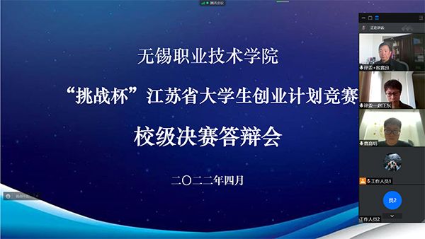 4月2日下午,我校顺利举行2022年“挑战杯”江苏省大学生创业计划竞赛校级决赛。本次决赛采用线上路演和答辩的形式,入围的参赛团队代表依次进行线上展示。校团委邀请了多名具有丰富创业竞赛经验和创业经历的专家担任评委。
