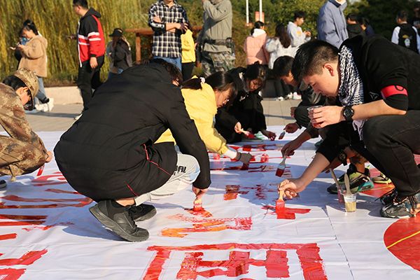 新思想青年学社为大家介绍了党指挥枪的历次经典战役,回顾了人民军队在党的旗帜下前进的光辉历程;橄榄绿军事爱好者协会为大家科普枪械、单兵携行具等军事装备的相关知识,介绍了我国国防取得的巨大成就。参与活动的同学们一起用颜料共绘蓝图,完成百人手绘,感悟“爱党拥军筑国防,不忘初心强军梦”的豪情壮志。本次活动还邀请了校内其他学生社团和其他高职院校的军协参加。
