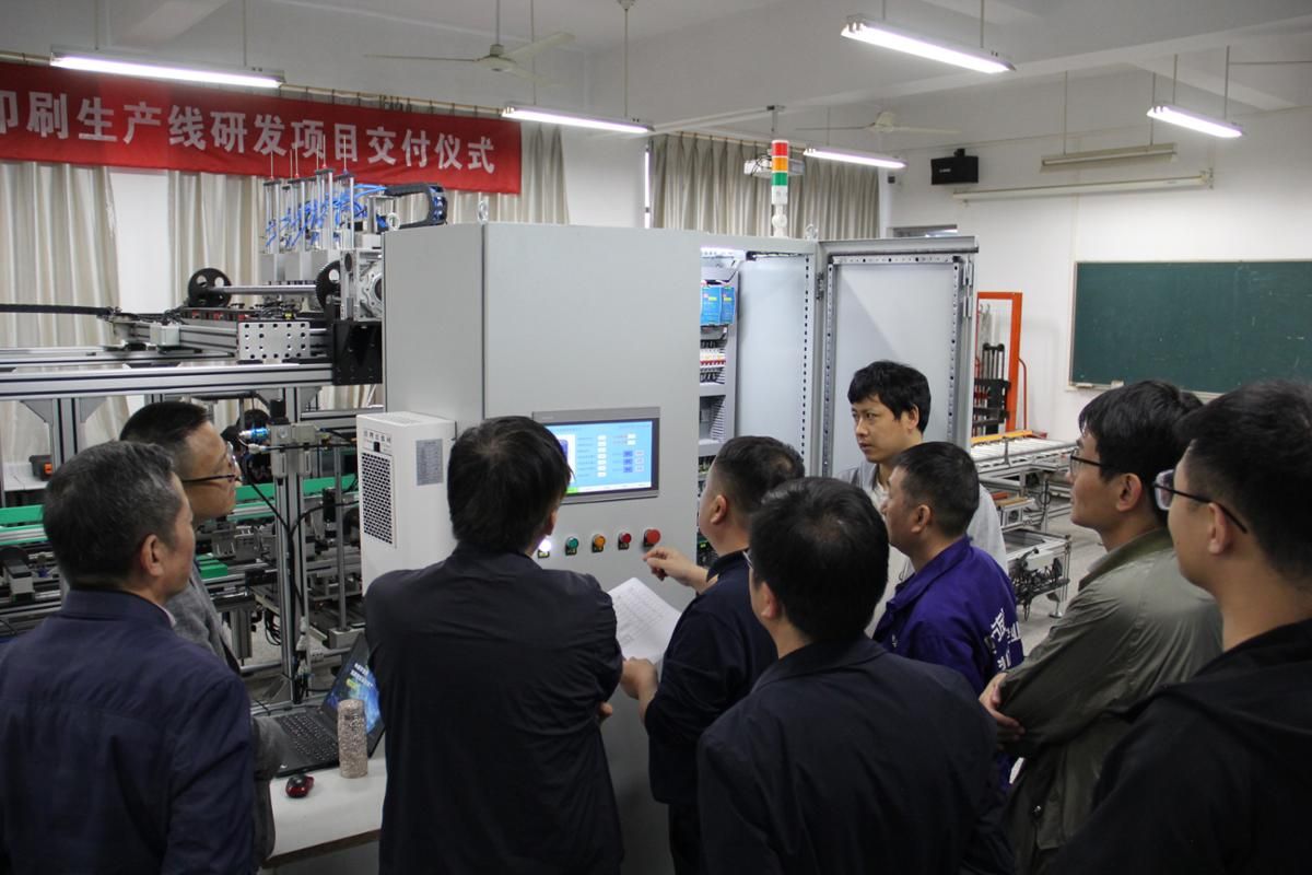 日前,机械工程学院为无锡四方友信股份有限公司研发的“柔性钢桶丝网印刷生产线”项目,在校企领导共同见证下,通过设计方案介绍、现场操作演示、技术答辩等环节顺利通过专家验收,企业负责人和技术专家对设备参数、操作性能、稳定性等均表示满意。
