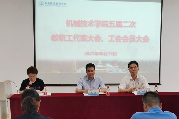 615日,机械技术学院第五届第二次教代会、工会会员大会在工业中心A机械技术学院会议室召开,会议由机械技术学院分工会主席宋佳娜主持。