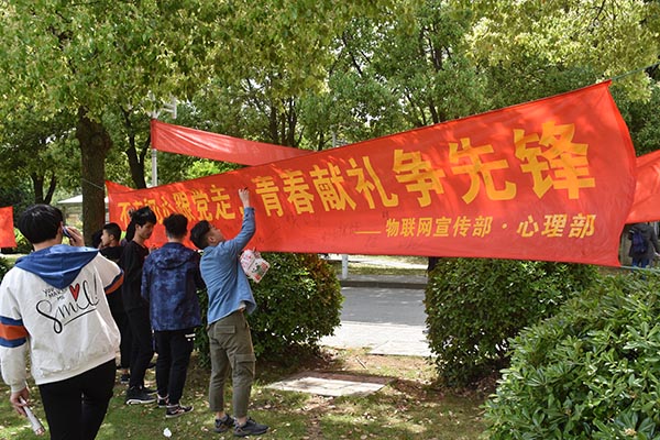 57日下午,物联网学院在梅园篮球场组织开展了“我为‘五四’留名”路演签名活动,纪念五四运动100周年,几百名名青年学子参与其中。