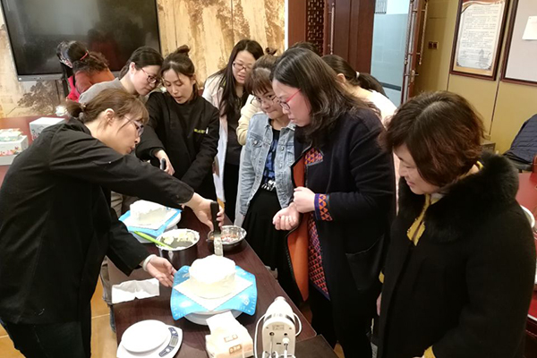 12日下午,外语与旅游学院又组织分院女教工开展了西点烘焙体验活动。烘焙师从蛋糕的配方的讲解到过程的演示,解析每个步骤,让大家感受烘焙的魅力的同时,也学习了烘焙技巧。几位女教师还亲手制作了香气四溢的蛋糕。