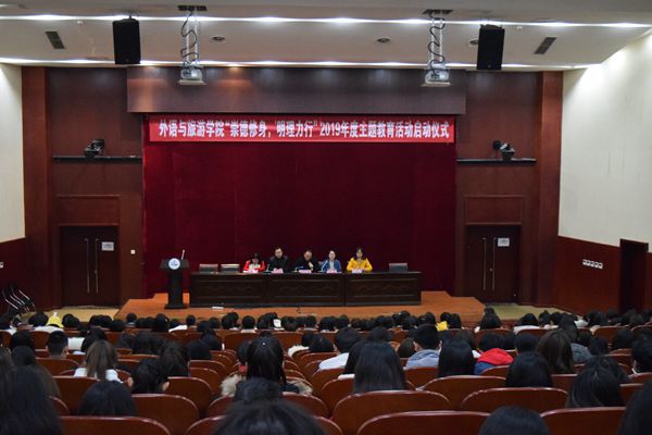 35日下午,外语与旅游学院崇德修身,明理力行”2019年度主题教育活动启动仪式在国际交流中心一楼报告厅举行,分院党总支书记江铭及学工办负责人、全体辅导员、学生代表参加了活动。