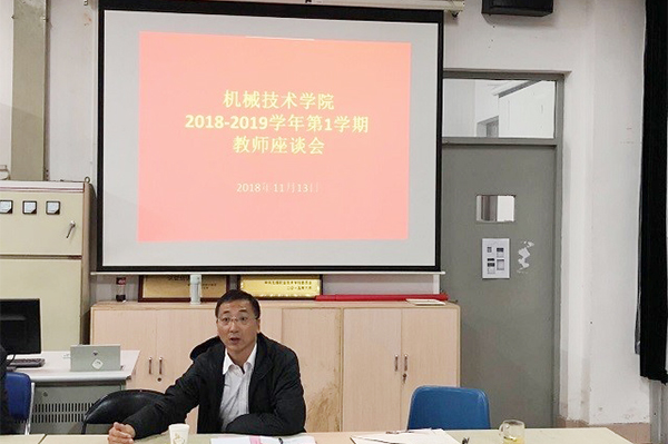 11月13日下午,机械技术学院2018-2019学年第一学期教师座谈会在工业中心二楼会议室举行。机械技术学院领导班子全体成员和32名教师代表出席会议,龚方红校长作为联系领导参加了会议。会议由学院党总支徐晴书记主持。