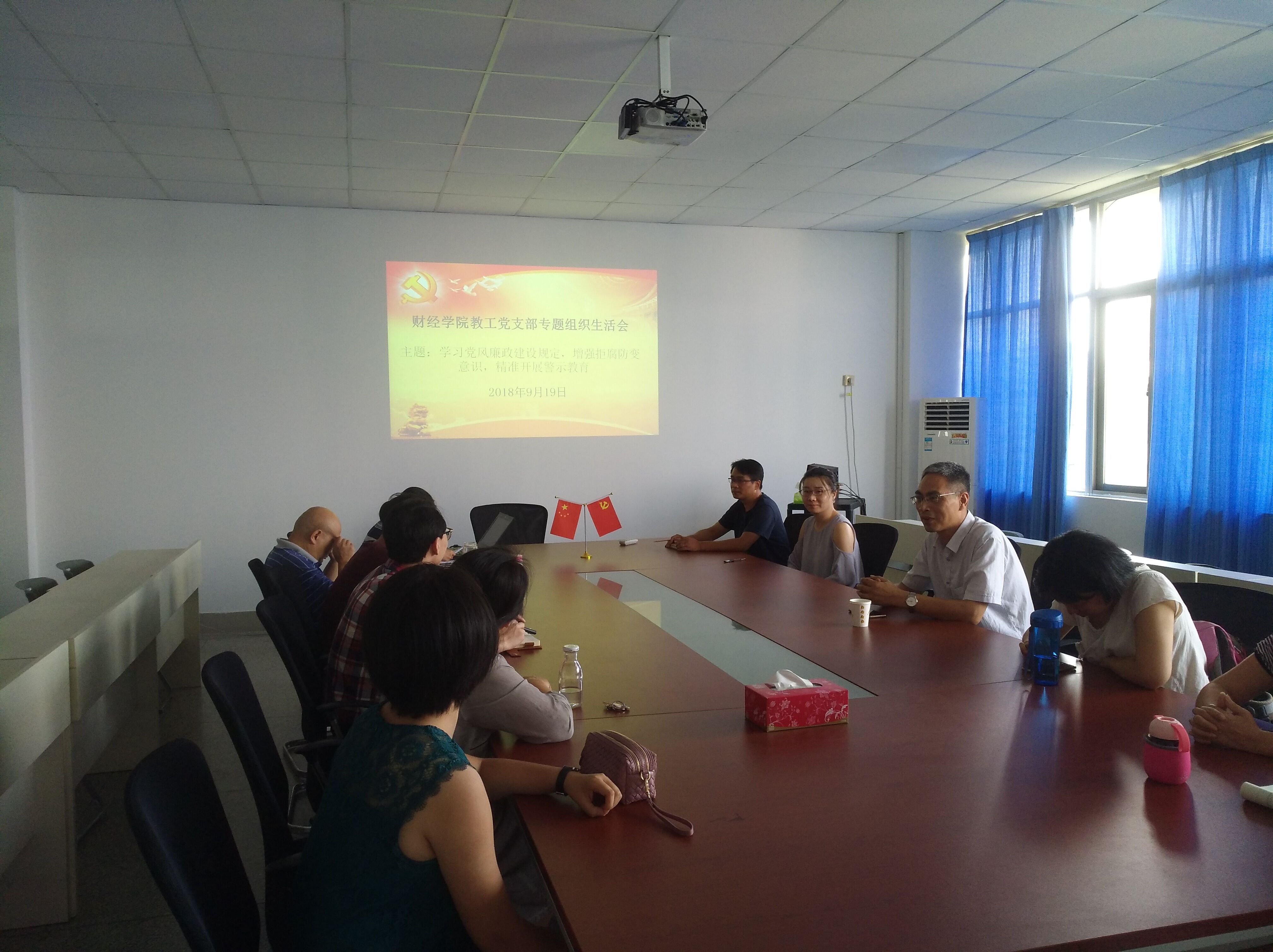 根据省纪委及党委组织部的通知要求,财经学院学生党支部和教工党支部分别于918日下午13:30在明德楼401919日下午1520在分院会议室(明德楼408)召开了专题组织生活会,精准开展警示教育。