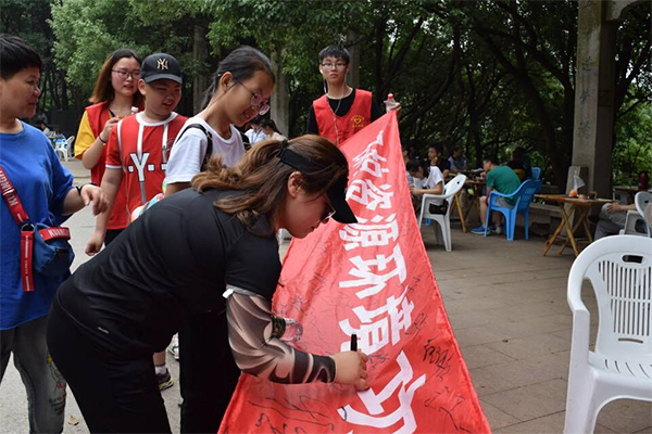 6月10日早上,全体成员身着多宝官方网站汽车与交通学院志愿者服装,带着保护环境的横幅在学校图书馆门口集合,然后前往活动目的地——惠山。活动开始后我们由山脚出发,在沿途的山道上,向路人宣传保护环境的重要意义,并邀请路人们在“环境保护”横幅上签字。在登山的过程中,同学们只要看到垃圾就会主动捡起放入垃圾桶,把保护环境的理念和实际行动结合起来。